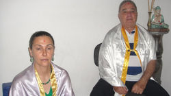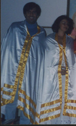 ![]() Jnana Dhata Shakti Sampannah Dasa (Antonio Arias) e Jnana Dhata DeviMarga Dasika | ![]() Condecoração Honorária da Federação Internacional de Yoga de Ashramacharya para DeviMarga Dasika | ![]() Jnana Dhata Shakti Sampannah Dasa (Antonio Arias) |