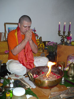 ![]() Erick Schulz realizando um Agni Homa | ![]() Cerimonia de Casamento realizada pela Jnana Dhata DeviMarga Dasika | ![]() Iniciação de Acharya para Erick Schulz em 2008 no Chile |